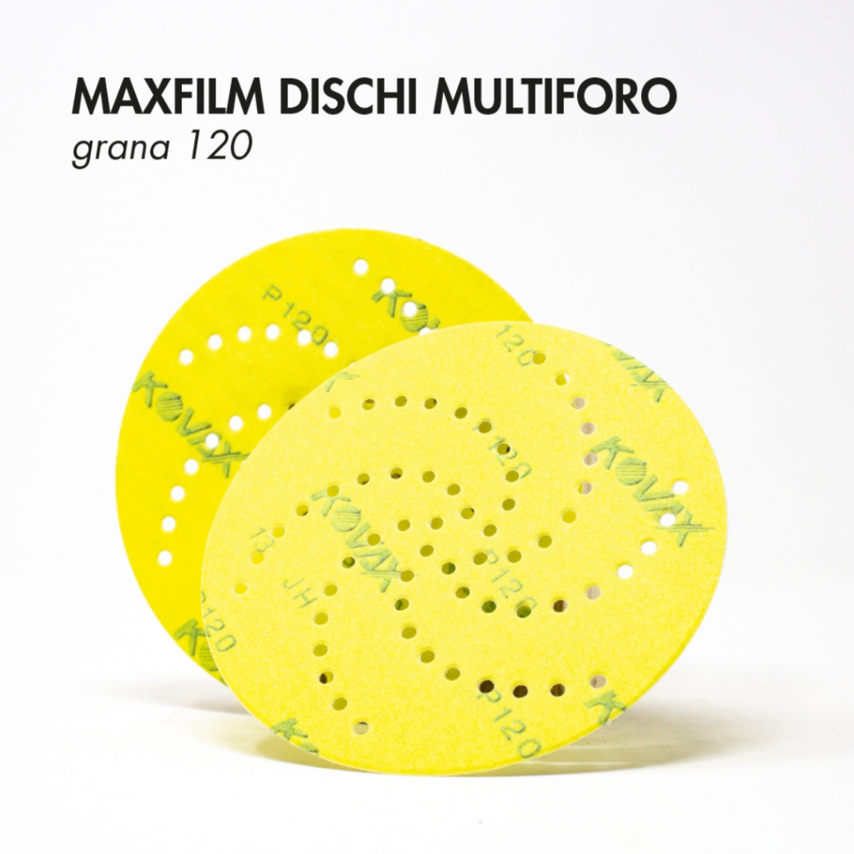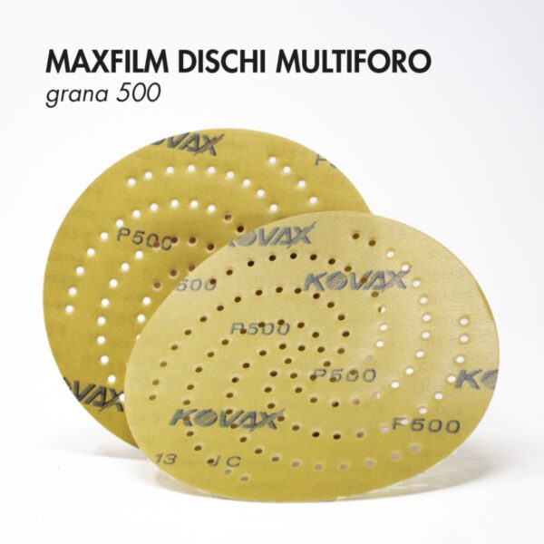 MAXFILM DISCHI MULTIFORO P120/220 per carteggiatura stucco: Utilizza i dischi KOVAX MAXFILM P120, poi MAXFILM P220 prima di applicare lo stucco, per preparare il supporto danneggiato portando la lamiera al vivo. Dopo aver applicato lo stucco, lascia asciugare poi carteggia utilizzando MAXFILM P120 per spianare la superficie interessata, poi MAXFILM P220 per rifinire ed eliminare gli eventuali graffi lasciati dal disco usato precedentemente.