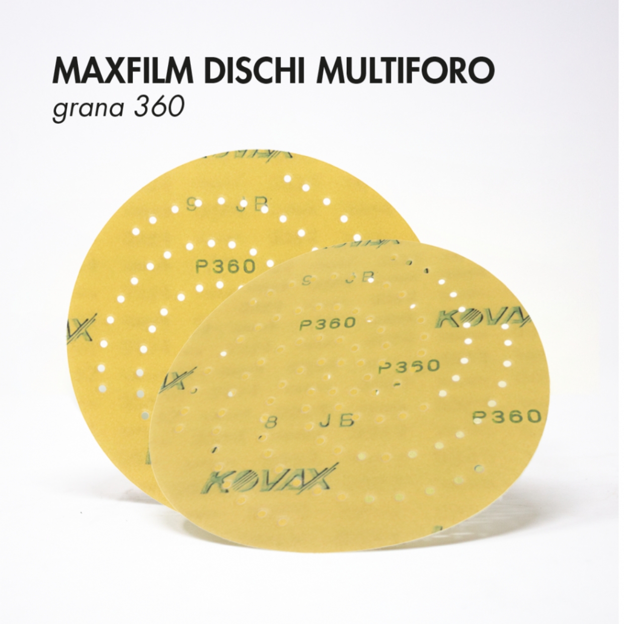 MAXFILM DISCHI MULTIFORO P360/500 per carteggiatura fondo Spiana il fondo utilizzando MAXFILM P360, poi rifinisci con MAXFILM P500. Per uniformare la superficie toccando i punti dove il disco non arriva, opta per la carteggiatura manuale, utilizza SUPER ASSILEX K500 con SUPER ASSILEX PAD.