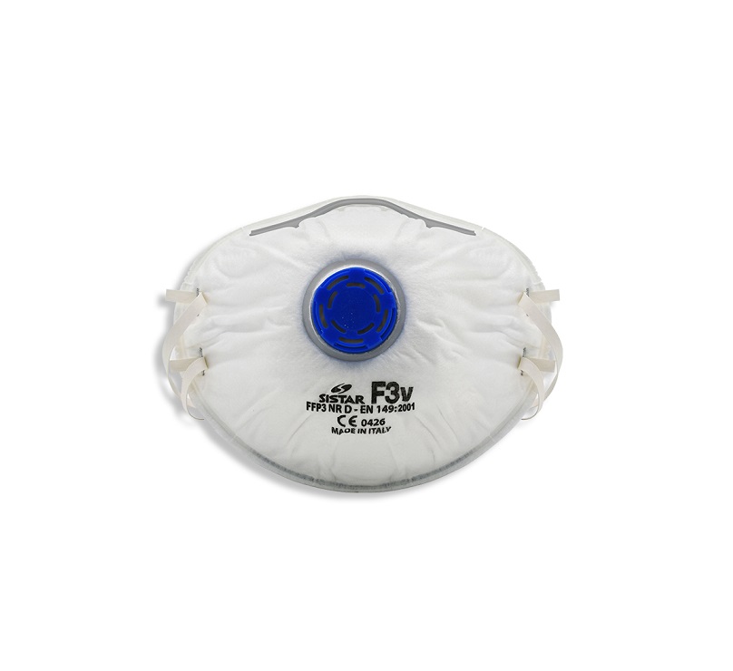 Facciale filtrante a conchiglia FFP3 NR D con valvola di espirazione. Protezione da particelle solide e liquide altamente tossiche fino a 50 x TLV. Indicato per le polveri ed aerosol di prodotti ad alta tossicità come cromo, nickel, piombo, alcuni pesticidi e sostanze chimiche allo stato liquido. Adatto per la rimozione dell’amianto.