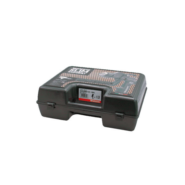 Aerografo Slim Kombat HTE in fibra di kevlar color verde militare, completo di valigetta, accessori e regolatore di pressione entrata aria TOP con manometro.